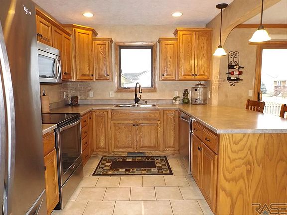 4 bed, 3 bath, 3 stall garage, 2778 finished sq ft, split level entry home with a spacious 6 x 10 foyer and big double closet. Located on a fenced-in 12,637 sq ft corner lot. This home has a fantastic master suite with vaulted ceiling, walk-in closet and double sink vanity. 2 additional bedrooms on main both w/walk-in closets. Kitchen has Dakota Kitchen & Bath cabinets with dovetail drawers, large pantry, stainless steel appliances, breakfast bar, and tons of counter and cabinet space. 13 x 11 dining room with slider to 14 x 14 deck. Lower level includes: 21 x 18 family room with gas fireplace and a flat screen TV; a 14 x 20 activity/MAN CAVE/craft room with can lighting and laminate wood flooring; the 3rd bath and 4th bedroom. Back yard also has a block patio for entertaining or relaxing.