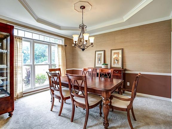 - Interior: 2-Story Foyer, Entrance Foyer, Trey Ceilings, Wall/Wall Carpet, 9 ft + Ceil Main, Bookcases, 9 ft+ Ceil Upper, His & Her Closets