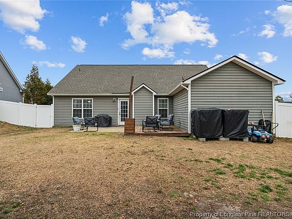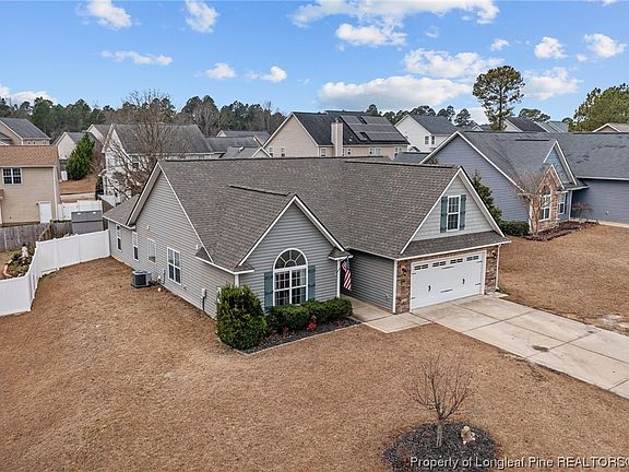 Beautiful well maintained ranch style home located in the Colony at Lexington Plantation. This home features a fully fenced in yard, outdoor shed, 2 car garage, 3 bedrooms & bonus room. The spacious living room has vaulted ceilings & an electric fireplace opening up to the large kitchen w/plenty of cabinet/counter space, SS appliances an eating nook & wonderful walk in laundry room. The primary bedroom has high ceilings, dual WIC's, a nice en suite w/dual vanity, jetted tub & stand up shower. It is located opposite of the 2 additional bedrooms & additional full bathroom. The bonus room is located above the garage & very good in size. The fully fenced in backyard with storage shed is perfect for entertaining on the concrete pad & deck. This home is conveniently located to shopping/dining, a 20-25 minute commute to Fort Liberty & hour or so to Raleigh. The neighborhood amenities include, community pool, clubhouse, gym and park. NEW ROOF Dec 2023, NEW downstairs HVAC July 2023.