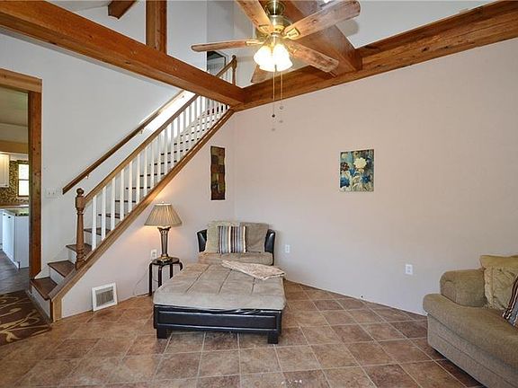 Imagine enjoying the convenient location of Canonsburg, yet feeling worlds away at your own private retreat thanks to spectacular views and green surroundings. This rare combination PLUS exposed beams, a large deck & vaulted ceilings are only a few features that create a unique atmosphere. The family room architecture highlights the vaulted ceiling, wood beams & overhead loft. Discover a fresh kitchen w/ updated white cabinets, tile backsplash & counter space that leaves room for testing recipes or prepping meals around the island. The main floor also has 2 bedrooms, full bath & laundry room. On the 2nd floor, the immense loft w/ skylights is perfect as an office, playroom OR whatever fits your needs. In the owner's bedroom, you'll find beautiful wood ceiling detail, expansive closet space & full bath w/ jetted tub. A mini apartment awaits your finishing touches in the basement w/ kitch, bedroom, family room & full bath. The outside deck...you'll have to experience for yourself!