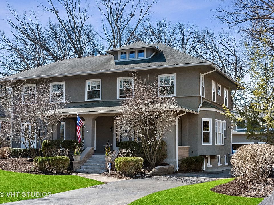 East Kenilworth 4 bedroom, 3.2 bath home boasts SEPARATE COACH HOUSE with an additional bedroom, full kitchen & bathroom in sought after location on 1/2 acre. This equals 5 bedrooms & 4.2 baths! Guests can stay in luxurious separate coach house. Main house boasts a new kitchen w/custom cabinets & decorator high-end stainless steel appls, large marble island, that opens onto spacious patio. Butlers pantry w/full second kitchen - refrigerator, dishwasher, sink, and countertops with cabinetry storage galore. Fabulous 1st floor plan with large family rm, spacious living rm w/fireplace sunfilled dining rm all with gleaming hardwood floors. Master suite retreat has bedroom w/attached master bath w/sep sink areas, sep toilet and walk-in shower. Master closet is a HUGE dream come true and has own laundry room. Newer baths w/heated floors, updated windows & newer floors. Suite on the 3rd fl. AMAZING guest house w/great rm,kitchen,bath over heated garage. French door to huge patio.