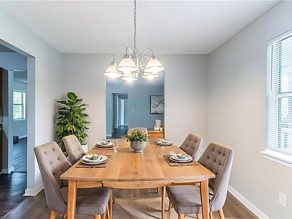 3-bedroom, 2-bath ranch in Auburn Trace with a functional single-level layout. The living area includes a stone fireplace and flows into an eat-in kitchen with matching appliances and stained cabinets. LVP flooring runs through the shared spaces, with carpet in the bedrooms. The primary suite features its own bath and closet. Outside, enjoy a covered front porch, back deck, and a level yard. A 2-car garage adds convenience. Strong option for buyers or investors looking for value in a convenient location. This home has been virtually staged to illustrate its potential.