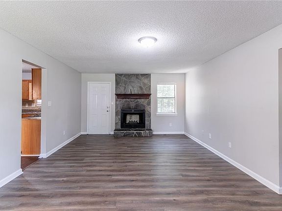 Stone fireplaceBack deckLevel yardCovered front porchMatching appliancesEat-in kitchenPrimary suite