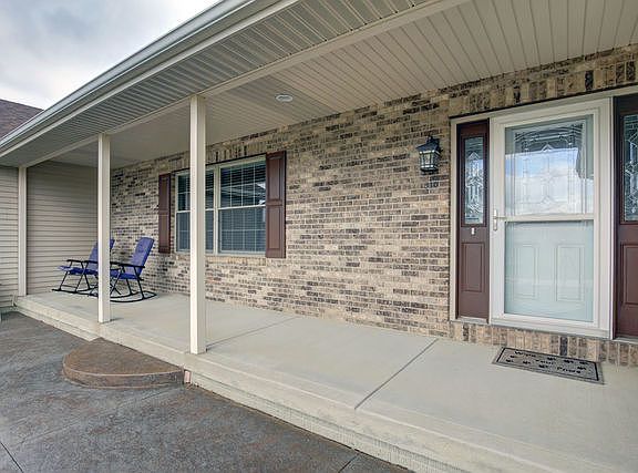 This large 1940ASQ, well cared for ranch-style home has a flexible floor plan. Home features an open kitchen w/duraceramic tile floor and all appliances stay into LR with vaulted ceiling and gas log fireplace, WIC and whirpool tub in the Master Suite, two nice size bedrooms, large utility room, 2.5 baths. Basement will WOW you with another 1940ASQ to finish or use as you choose. It gets even better when you step outside on the patio, enjoying a water frontage view. Located in Heritage Estates Subdivision on the West side of Fisher, very close to schools.