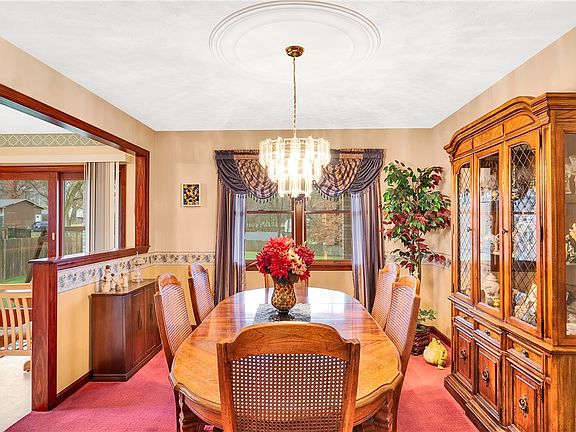 Beautiful 3 bedroom 2.5 bath, brick and vinyl split entry. Well maintained. Spacious rooms with high ceilings throughout. Equipped kitchen adjacent to the large dining room. Sliding door from the kitchen leads to the covered rear patio with a natural gas grill. Great back yard and nice landscaping. Master bedroom with master bath. Finished game room with electric fireplace, a bar and a half bath. Large cement driveway provides 4 additional parking space to the 2 integral garages w/auto openers. Lots of storage throughout. Being sold AS IS.