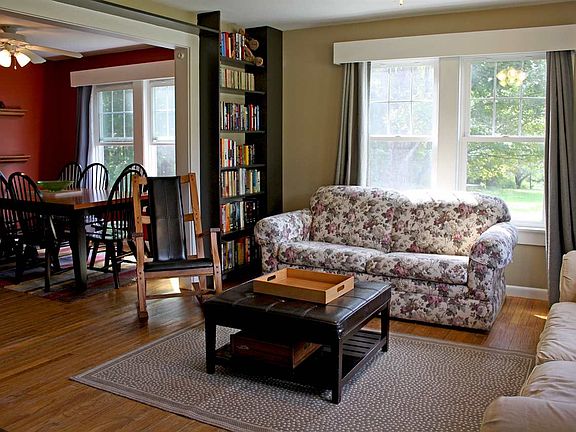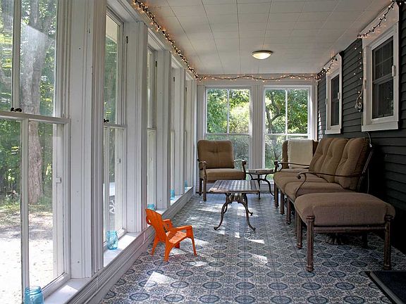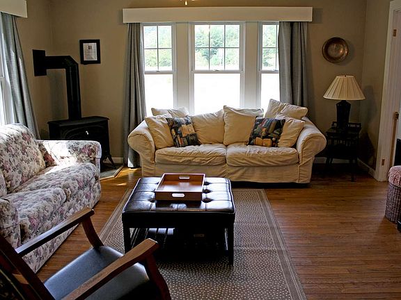 Updated, furnished farmhouse in the lakes region less than 1 mile to Okemo's Jackson Gore entrance. Enjoy a wonderfully convenient location within an easy bike or walk to nearby lakes and just 2.5 miles from the center of Ludlow village. There is approximately 100 feet of river frontage off the back of the property with great possibilities for summer use. The enclosed back porch is a perfect three-season room with privacy and large windows. Three spacious bedrooms have high ceilings and lots of natural sunlight. The bonus room on the third floor could be a wonderful family or game room. A brand new septic system was installed in 2013. There is so much more than meets the eye from the exterior. The double lot offers more than two acres with the possibility of a separate building lot. A solid value in today's market.