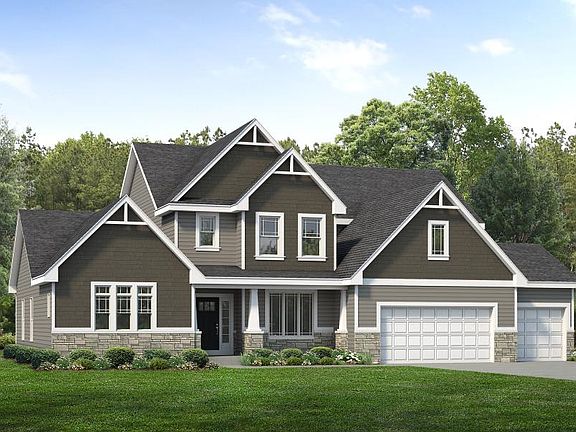 The Turnberry 1-1/2 Story 4,054 s.f. has a spacious Dining Room off the Foyer. This home has a wonderful open flow with Kitchen, Breakfast Rm, and Great Room. 9' ceilings on the first floor with 11' ceilings in the great room and breakfast room. Expanded Kitchen with gray cabinets and white quartz countertops. The fireplace is stone surround and mantel height wood bookshelves. Stainless steel built-in appliances. Extensive hardwood flooring throughout. The Owner's Bedroom Suite on the first floor includes a large luxurious shower, separate adult height vanities, and a large walk-in closet. The 2nd Floor includes 3 Bedrooms, Loft, and two full baths. Ready in July!!