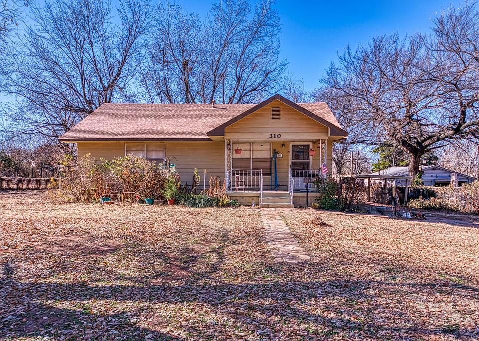 Living is open to the dining room and kitchen. Bedrooms are both good size. One full bath on main level and another full bath in basement. Basement is not considered in square footage. This property includes 5 city lots! Mature trees, with a few of them being Pecan producing. Underground storm shelter located on north side of home.