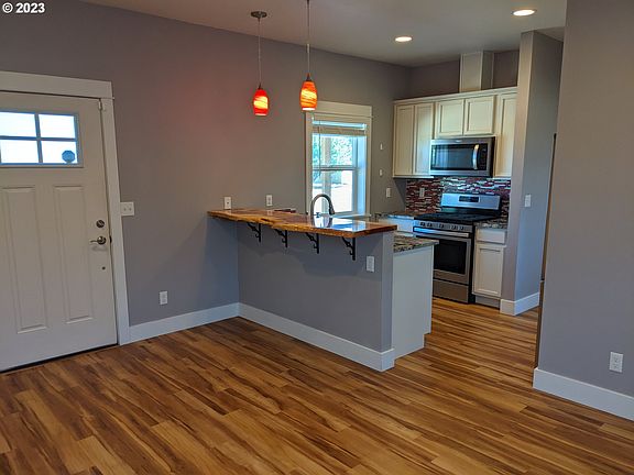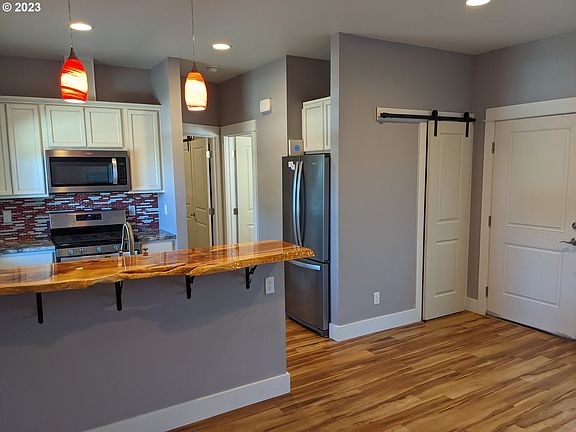 Simple living in La Grande! This home is very Well-built in a location with enough elevation to offer views of the Grande Ronde valley all while still being near EOU and downtown. Inside the home you will find stone kitchen countertops, tile backsplash, stainless steel appliances, and a whole lot more. With a two unit Mini split hookup, the home stays cool during the hot summer months and warm during the winter. Come check out this home and you just might fall in love with the simple living it has to offer!