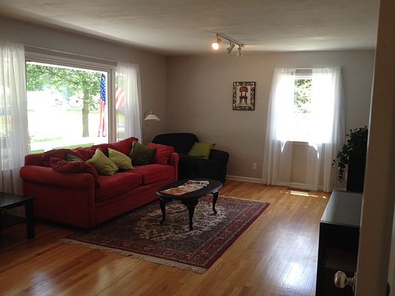 Recently remodeled/staged/furnished 3 bedroom 1 bath ranch hardwood floors full basement 1 1/2 car garage large yard in town close to schools and shopping new furnace and windows must see