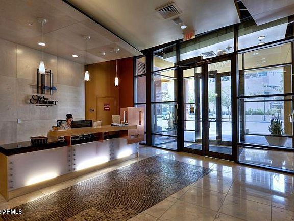 Urban living is gaining momentum booming with development as prices at Summit are under market value due to special circumstances. Limited availability NW 11th floor corner residence with wood floors throughout overlooking downtown plus rewarding AZ sunset views. Features; granite counter tops, SS appliances, updated kitchen with decorative back-splash (not shown), 1/2 bath, full size W/D along with full master bath with dual sinks and separate shower tub. Situated in-between D-Back's ballpark & Suns Arena only steps from light rail station, enjoy all the popular amenities from a 24hr desk person, underground parking, storage, 24hr fitness gym w/ locker rm + dry spa, conference rm to a beautiful roof top terrace clubhouse with fire pit. 5% FINANCING AVAILABLE!!