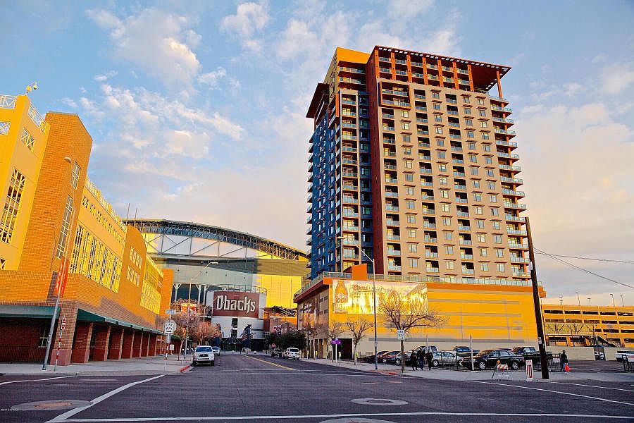 * True city living in the heart of downtown Phoenix! Located next door to Chase Field. Spectacular 14th floor unit with city light, sunset and mountain views. This one bedroom unit features granite counters, floor to ceiling windows with roller blinds, double sinks in master bath, in unit laundry, powder room, custom wall finishes and is available fully furnished (furniture by separate bill of sale) for a truly turnkey opportunity. Urban living at it's finest. Fantastic building amenities include 5th floor heated pool/spa with grills, 23rd floor roof top viewing deck with fire pit, 24 hr fitness center, club room, business center, dry spa and locker room, parking garage, storage, secured entry, front desk and more. Light rail access, restaurants and shopping all near by.