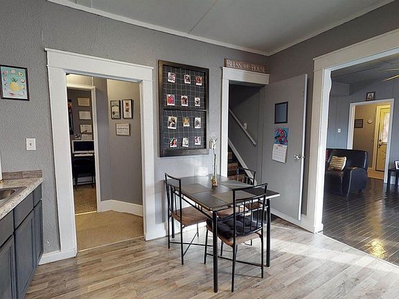 This property offers a newer insulated shop (built in 2015) with alley access. The pull-through shop has oversized garage doors on front and rear sides. The shop is 25' wide x 40' long x 15' high. Some updates have been started on the home; newer siding on the exterior of the home along with newer windows including a sliding glass door. Recently painted, kitchen has been remodeled with new counters and floors. The Basement is mostly finished, it has full bathroom. There is an attached oversized single car garage. Enjoy small town living at an affordable price. The Washer/Dryer in basement is included. House is ready to move