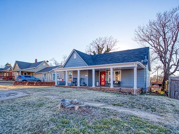 Cute home in the heart of Kingfisher. This 3 bed 1 bath home features a large covered porch, new exterior paint, updated windows and bathroom, an oversized laundry room, and a good-sized backyard. Schedule your showing to check out this adorable home.