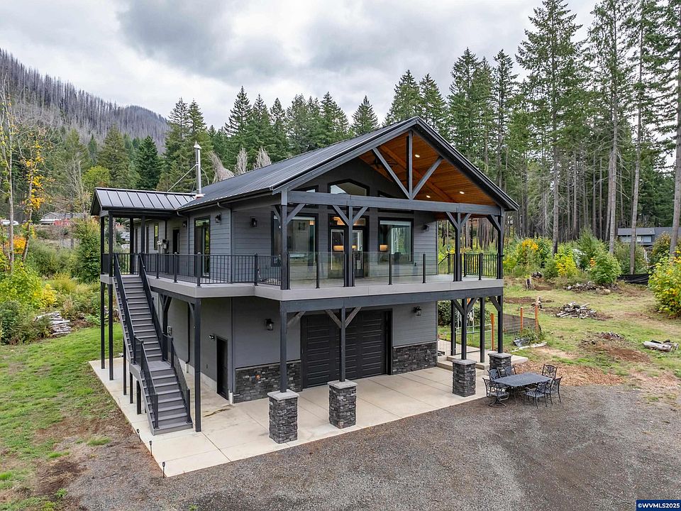 YOU DESERVE THIS AWESOME CUSTOM 2022 DETROIT LAKE home with unobstructed lake, island & Cascade foothill views! Fresh, open & elevated, light & bright great room plan on 2.71 private partitionable acres with easy access to beautiful Detroit Lake! LUXURIOUS finishes include granite countertops, curved bar, stainless appliances, cozy woodstove, tiled walk-in primary shower, covered viewing deck, huge 6 car garage w/9 ft door & EV charger, outdoor shower, RV area w/50 AMP & water, cargo lift & so much more! The protected wetlands across the street will preserve your amazing views! The day use park at the road's end offers picnic tables and lake access for swimming, fishing, kayaking, paddleboarding & nature trails! Watch the surfers and wakeboarders demonstrating their skills from your deck! Hike all the way to Piety Island in the off season & catch the trail to the top! Near two seasonal marinas, rivers, parks, stores and the city center! This Pacific Northwest wonderland offers outstanding opportunities to explore the great outdoors, with Breitenbush Hot Springs just a short distance away, the Pacific Coast Trail and Hoodoo Ski Resort up the pass, Ray Benson and nearby McCoy Creek for snowmobiling and OHV opportunities, hunting, hiking, and many other minor lakes to explore! One hour to Central Oregon for additional exploration opportunities, two hours to PDX or the beach! This property is grandfathered to have direct North Santiam Hwy access and may be partitioned. EXPLORE THE POSSIBILITIES! Plenty of room for you to build a separate shop, more homes, a family compound, vacation rental or just revel in the peace and privacy that an acreage property can provide.