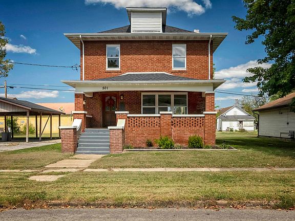 BACK ON MARKET AND READY FOR YOU! Welcome to your dream family home in the heart of West Frankfort! With updates throughout the home including in the kitchen and bathrooms, this home seamlessly combines historic charm with contemporary comfort. As you step inside, you'll immediately notice the spaciousness that this home affords. The living room features a large inviting fireplace and tons of natural light. The formal dining room adjacent to it offers a great space for hosting special dinners. Upstairs, the master bedroom boasts a coveted walk-in closet, providing ample storage for your wardrobe and personal belongings. The additional bedrooms are all good size with ample closet space, and there’s a full bath on each floor. Step outside onto the huge front porch and imagine the delightful moments you'll spend here. This porch has been the setting for many memories over the years with Prom photos, late-night hangouts, and thousands of trick-or-treaters and it’s been refurbished to ensure it can be used for years to come. Set on two generously sized lots, this home offers a spacious backyard and a detached two-car carport and oversized driveway. This home has recently passed a VA appraisal, and it's now your golden opportunity to make it yours. The previous buyers couldn't complete their purchase, so don't miss out on this second chance to own a beautiful home between the high school, the park, and Mike’s Drive-In. Schedule your showing today!