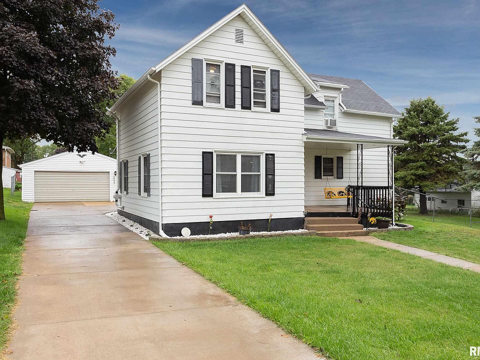 Small town living and modern charm await you in this spacious 4 bedroom home in Maquoketa with almost 2,000 sq feet . Property sits on a double lot with a fenced in yard and beautiful landscaping. New high efficiency A/C & Furnace in 2019. Stainless steel microwave, and dishwasher new in 2019. Main floor laundry off the kitchen. Formal dining room could be a living room or an additional bedroom on the main floor. Covered patio with current above ground pool. New sewer line in 2015. 1/2 bath in basement does have an enclosed shower. Extra lot has an additional parking slab. A home of this size for this price won't last long! Check it out today!