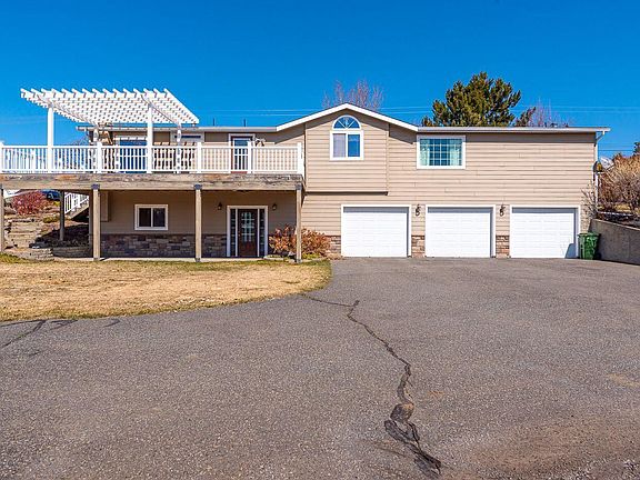 Spacious home with beautiful, unobstructed valley views to enjoy off upper level deck with treks decking. Located on a dead end street , lots of privacy and many features to this home makes for desired living. Home is in great condition, 3 bedrooms on main level, nice master and bath, other 2 bedrooms nicely separated. Fully finished basement has tiled floors large open space for all your activities, a 1/2 bath, office/den or additional bedroom. wood stove 0n beautiful hearth. Storage everywhere. Plenty of parking with a 952 sq.ft. 3 car attached garage, plus lots of space for toys or RV.