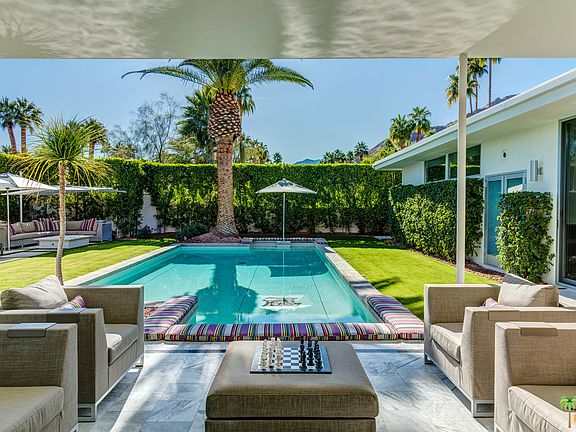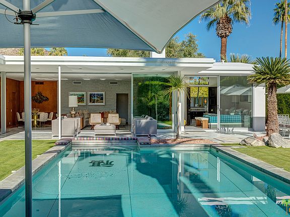 ICONIC 4 bed 4 bath MID-CENTURY MODERN estate with Terrazzo pool designed by Herbert Burns for Madge Phillips, the heir of Phillips Petroleum, has become available. Located in Downtown Palm Springs' Tennis Club neighborhood, this beautifully-appointed home is within blocks of restaurants, retailers and multiple entertainment venues! High ceilings, floor to ceiling glass, period as well as current finishes like new roof, three HVAC systems, Fleetwood sliders with motorized window treatments and more! Grand entry, living and dining areas with floor to ceiling glass sliders that open to the pool. Kitchen offers quartz counters, stainless appliances, and direct access to the outside BBQ. South-facing Master Suite offers incredible mountain views and direct access to the ultra-private backyard. Junior Ensuites Two and Three, which are on the other side of the house, each open to the outside and have their own bath. Bedroom Four also opens to the outside and is adjacent to a bath. Stunning!