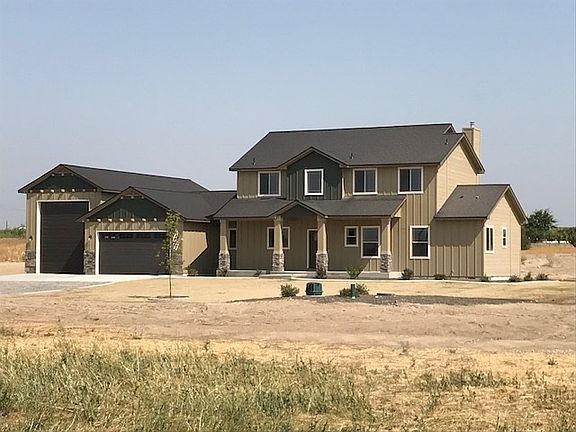 Gorgeous custom built 4 bed, 3.5 bath home on almost 2 acres located in highly desired Melba, beautiful view of the Owyhee mountains, master is on the main level. Three bedrooms upstairs, plus bonus room. One bedroom has it's own private bathroom. Granite countertops. Huge garage with an RV bay, 2x6 construction with upgrades throughout. There is plenty of room for all your toys and animals.