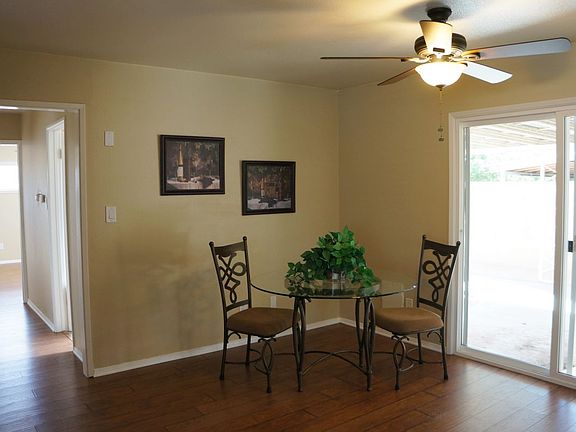 Nice home in established neighborhood. New wood lam. in entry. Living room has new wood lam. flooring, new custom blinds and fireplace. Dining room with new wood lam. flooring, new lighted ceiling fan and newer slider to patio. Kitchen features tile flooring, tile counters, new gas cooktop and exhaust hood. Two guest bedrooms with new wood lam. flooring, new lighted ceiling fans and custom blinds. Guest bath has tile flooring and tub with tile surround. Master suite with new wood lam. flooring, new lighted ceiling fan and custom blinds. Master bath has tile flooring and tiled shower.