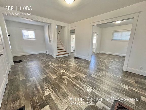 Call today to schedule a tour of this 3 Bed/1 Bath single family home for rent at 310 S. Spring Ave!! This spacious home centrally located in Sioux Falls was recently updated with new paint and carpet! The main floor features your living room, dining room, kitchen and a large front porch. Upstairs are 3 bedrooms and a full bath with tub shower. The unfinished basement features washer/dryer hookups and extra storage room. - $50 application fee per adult - $1295 security deposit - Tenants pay all utilities and are responsible for lawn/snow care - Pet friendly (3 max) and Non-smoking - Section 8 accepted if your voucher meets the marketed rent amount - Alpine Benefits included for $25/month extra (see website for full details) Professionally leased and managed by Alpine Property Management Back Patio Dining Area Front Porch Gas Stove Non Smoking None Online Tenant Portal Pet Friendly Tub Shower Washer/Dryer Hookups