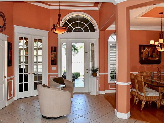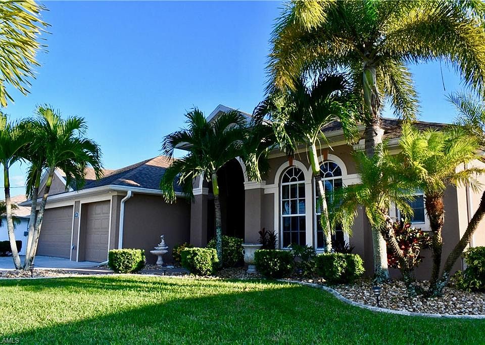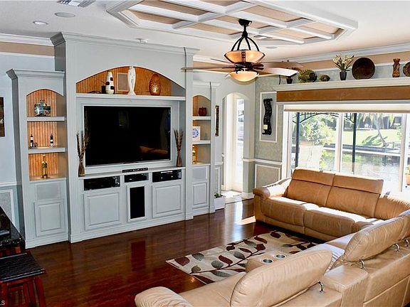 Custom designer touches make this a one of a kind home! This SPECTACULAR Gulf access home situated on an oversized lot, has 2700+ SF featuring 4BD, 3 baths PLUS Den, formal living room and HUGE family room. Custom wood finishes and upgrades are in every room including crown molding, chair rails throughout and custom built-in cabinetry in the family room and bedrooms. The master suite features a custom built-in fire place as well as a huge renovated master bathroom with soaking tub and separate shower. The 3 other bedrooms are beautifully customized with wood built-ins, a Murphy bed in the 4th bdrm, and a gorgeous built-in wall system in the den with rich dark wainscoting. In the heart of the home, the kitchen has custom wood cabinetry, granite countertops, stainless steel appliances and a center island. The standout feature of this home is the waterfront backyard! 5 sets of sliders lead you out to the large screened in lanai featuring an amazing waterfront view, outdoor bar perfect for entertaining, a solar heated pool, private spa, and gazebo. Walk down to the water and you'll find an extended wood dock as well as a concrete dock with a 10,000 lb boat lift. This is a must see!