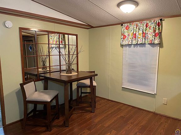 Large fenced yard in South Village Park! Lovely Single Wide Home, 3 Bedroom, 2 Bath in sought after Washburn Rural schools with lots of newer including; windows, hot water heater, carpet and some remodeling. Mature trees provide shade for lot. All electric. Approximately 8x12 storage shed with double loft stays. 2 parking spots! South Village Mobile Home Community is located just east of South Topeka Blvd on 45th Street. It is a popular community with events and management. Amenities include use of swimming pool, basketball and tennis courts and playground. Storm shelters on site, new dog park. Lot rent is $500. All homes in South Village are owner occupied. South Village is in the Washburn-Rural school district (USD #437), with school bus service (please confirm with school for your child). Background check approval required with $500 lot deposit.
