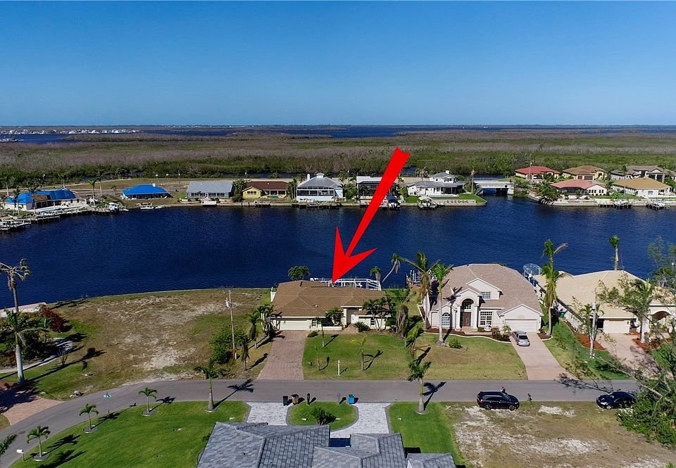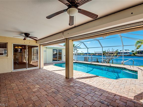 This home welcomes you with breathtaking water views &great boating access.Welcome to Lake Rosemary a 15-minute boat ride to open water/Matlacha pass.Recent updates /features include 2023 new roof,new a/c 2022, home has been replumbed, hurricane protection includes rolldown shutters on lanai & front door & the rest of home has accordion shutters,paver driveway& lanai.The interior of the home features almost 2100 sqft of living area with a layout that encompasses lots of waterfront views.As you enter the home you walk into a formal living room/ dining room which overlook the water,to the right is the master suite & master bath has granite tops with dual sinks, relaxing soaking tub,walk in closet with organization system.The other side of the home houses the generous size kitchen with wood cabinets,island,bar area,breakfast room &relaxing family room again lots of water views to take in,the 2 guest rooms share a bathroom that accesses the pool area & both bedrooms have walk in closets with organizers.Located in an up & coming area of Cape Coral with lots of new homes & city utilities in place.Just needs a new coat of paint & a few cosmetic touches to take this home from now to wow!
