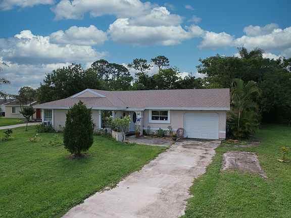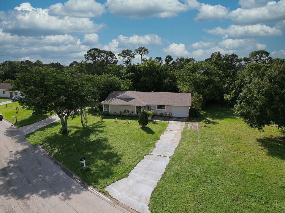 Charming 3BR/2BA home in central Port St. Lucie! Features an updated kitchen with granite countertops, tiled backsplash, stainless steel appliances, and ample cabinetry. Enjoy ceramic tile and laminate flooring, a formal dining area with impact sliders leading to a covered lanai. The spacious 17,526 sq ft lot offers a large backyard with a shed, room for a pool, and space to park your RV or boat. Parks Edge POA includes clubhouse, pool, tennis & shuffleboard for just $18.71/month! Close to schools, shopping, dining, and Mets Spring Training. Only 45 mins to Palm Beach Airport. Enjoy the beautiful beaches, fishing, and boating of the Treasure Coast!