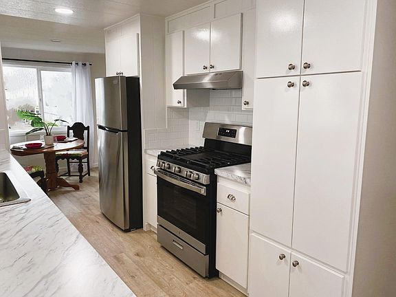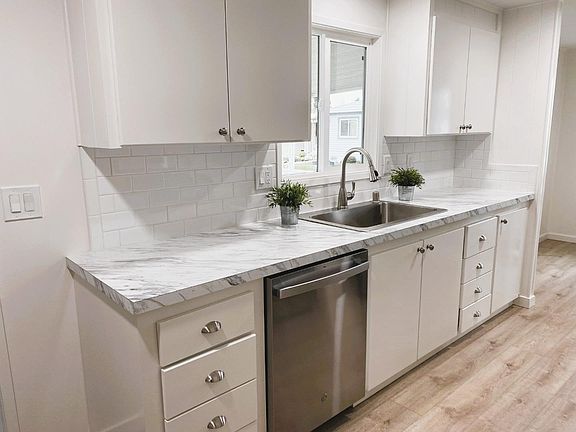 Fully Remodeled! No Property Taxes! Double Pane Windows. Stunning new white gally kitchen with all new cabinetry, new appliances, and new countertops. New recessed lighting and new flooring throughout. Spacious Living and Dining Room. New water heater & almost new furnace. Beautiful new bathrooms with new vanities, toilets, tub and showers. Freshly painted inside and outside. Two Bedrooms and two full bathrooms. Roof was resealed. Located in the highly desirable Mission Bay Mobile Home Community. This is a Senior (55+) community. One buyer must be 55 years or older and all other residents in the home must be at least 18 years of age. Buyers must be approved at the park to purchase. Space rent is $1307.