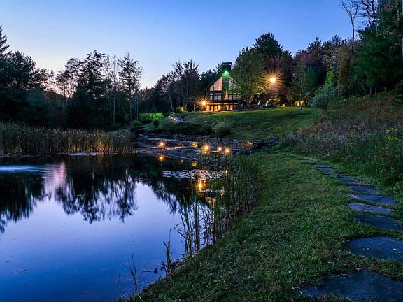 EXCEPTIONAL ; DRAMATIC ; PANORAMIC ; EPIC VIEWS ; MAGICAL SETTING ; PRIVATE ; 26+ acres (2 separately deeded parcels) sculpted into an iconic Catskill get-away. TOP-QUALITY construction throughout this 3-level home means you'll enjoy every minute of your stay - full-time or ESCAPING THE CITY in any season. In fact, we bought it because of how beautiful it is in winter!'' - the current owners. The centerpiece of the home is the spectacular living room with a wood burning fireplace centered on a 2-story WALL-OF-GLASS with sliders opening onto a WRAP-AROUND DECK overlooking custom landscaping, stonework and pond (with FOUNTAIN & WATERFALL) and the beautiful PLATTE KILL VALLEY framing it all. The open floor plan integrates the CHEF'S KITCHEN: glass-like GRANITE COUNTERTOPS with BARSTOOL-ISLAND, VIKING range and microwave, BOSCH dishwasher, STAINLESS French-door refrigerator and CUSTOM-BUILT CABINETS. Privacy abounds in the upper floor master suite with CUSTOM BATH with walk-in TILE SHOWER w/ Grohe 5-head BODY JET shower fixture and a JAPANESE TOTO TOILET (as are all toilets in the house). 2 additional bedrooms and a pristine white subway-tiled full bath off the kitchen. The FINISHED WALK-OUT GROUND-LEVEL is an 'ENTERTAINMENT-CAVE' MEDIA ROOM with custom FIELDSTONE FIREPLACE, reclaimed BARN-WOOD WALLS, recessed lighting, half-bath and walk-out glass doors to the COVERED ENTERTAINMENT BLUESTONE PATIO. An attached 2-car garage, propane heat/central AC, whole-house generator, SMART-HOME features and a gated driveway complete the package. Minutes from desirable Catskills communities of Margaretville, Andes, Bovina, Delhi, Meredith, Arkville, Roxbury and Hobart. Ski, hike, bike, train-rides, shopping, dining, spas, spiritual retreats - you're in the center of it all.