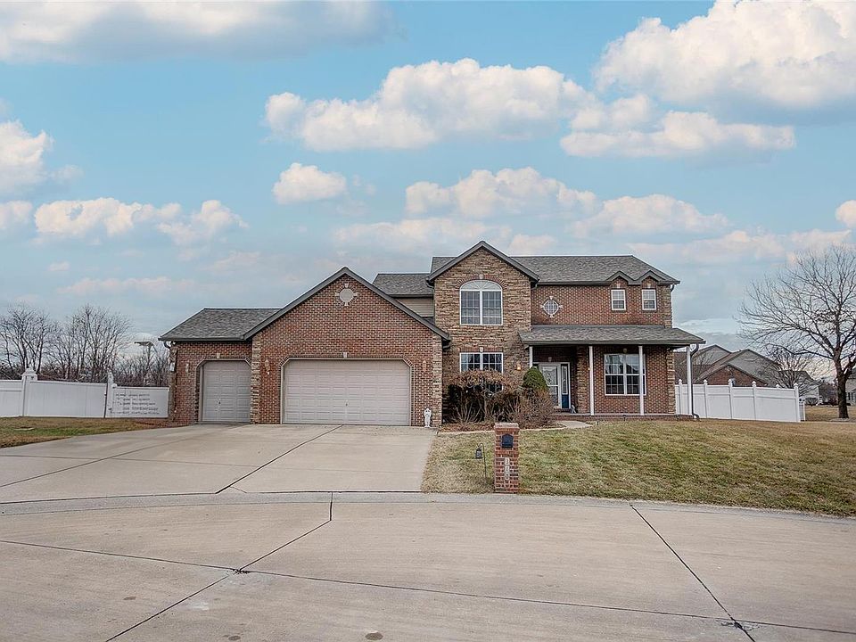 This 4 bed/3.5 bath gem is filled with updates. NEW roof 2022. NEW flooring 2023, LVP main floor and fresh carpet upstairs. NEW Quartz countertops and single basin sink (2023) in the kitchen! FRESH Paint 2023! The largest lot in Stonefield Crossing Subdivision! 6ft privacy fence. The deck is grandfathered in with HOA. Ducts cleaned 2023. Main level features laundry off the 3-car garage; formal dining; sitting room or office; and an open concept for living, dining, and kitchen! Great for entertaining. Kitchen has adorable garden window ready for plants and herbs to flourish. Upstairs hosts 3 bedrooms and a large master suite. Nearly 500 sq feet between master bedroom, closet, and bathroom with double vanity sink, separate shower/tub, and your own toilet room. Basement is partially finished while offering another full bath and multiple storage rooms. Egress window adds potential for a 5th bedroom! HVAC 2009. ADT Security System. HWH, Furnace, and AC 2005 A/V recording on premises.