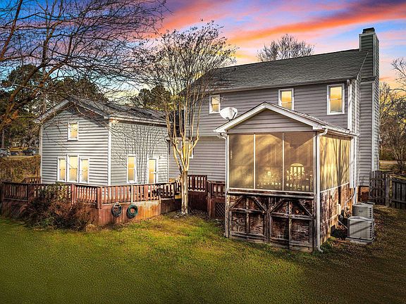 SPACIOUS COUNTRY LIVING close to everything! Clayton grew up around this roomy subdivision, so it has all the space and privacy of a large, wooded lot ~ and all of the convenience of being perfectly placed just a short drive from shopping centers, eateries, public parks and major highways. Very well-maintained home is move-in ready and waiting for you! Fresh paint on walls and flat ceilings. Roof, siding, skylight, windows replaced in 2016. A/C Heat Pumps replaced in 2020 and 2022. New stainless fridge and gas range with hood sit in a recently remodeled kitchen with tile floor. Fireplace with remote control. Huge, tree-lined, fully-fenced yard. Mature Landscaping. Wrap around deck. Large screened in porch with tool shed underneath. Sunroom w/spiral staircase leading to loft area. Climate controlled garage. HOA is $30/mo. Check out the virtual tour! Owner works from home and requires at least 1 hour notice for showings. Owners have a well-behaved, INDOOR cat. Be sure to keep outside doors closed tightly when viewing the home.