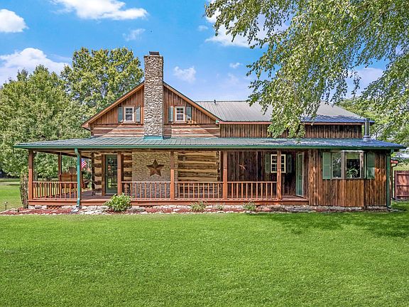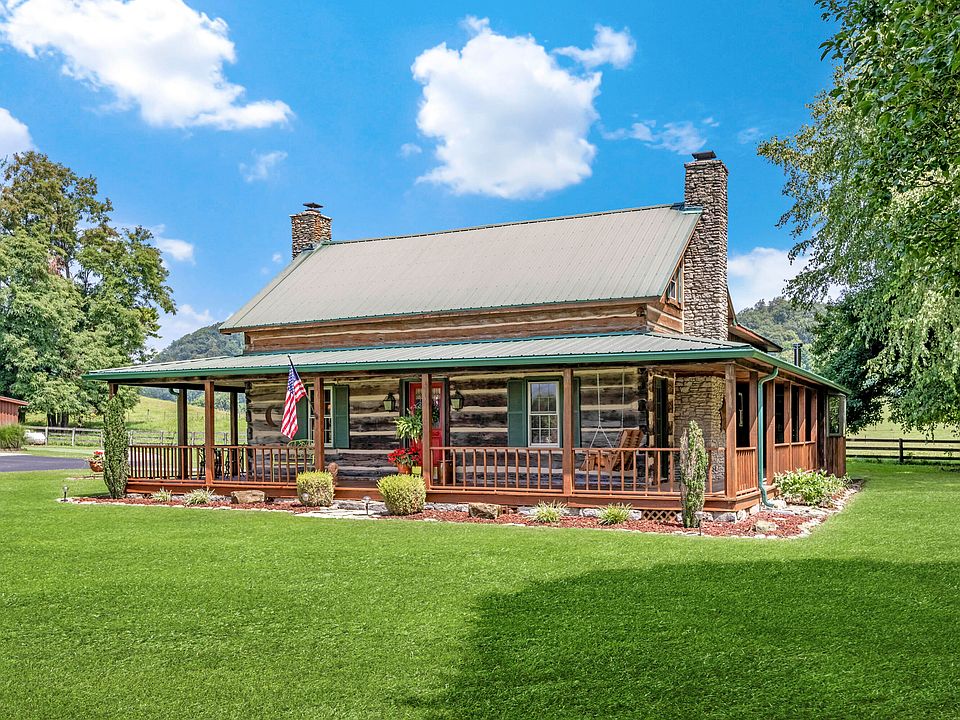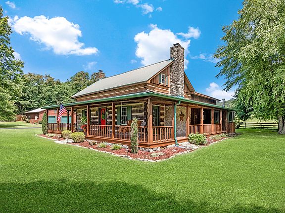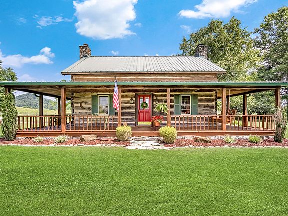 This impeccably-maintained log cabin just 15 mins from downtown Danville in the Moreland area is surrounded by sprawling farm views, and looks like it could be featured in an issue of Southern Living magazine. Beautifully-manicured level 1.43 acre lot with mature trees and gorgeous landscaping. Inviting wrap-around front porch. Incredibly picturesque setting -- is a MUST SEE! Potentially a 5-bedroom, this home has tons of originality throughout. Stand-out features include the hand-scraped original hardwood floors and stacked stone and brick chimney/hearths, along with a fabulous sunroom with abundant windows overlooking a private, peaceful farm. A loft upstairs could make a great 4th bedroom, playroom, office or workout area. Ample storage in the attic and walk-in closets. Another room upstairs (without a window) could be a 5th bedroom. Lovely, clean interior full of warmth, personality and charm. There's nothing you need to do here but move in! And to top it all off, the 2-car detached garage has a finished room with heat/air, (perfect for a workout area or office), along with a storage loft, PLUS run-in sheds on the side if you'd like to have animals.