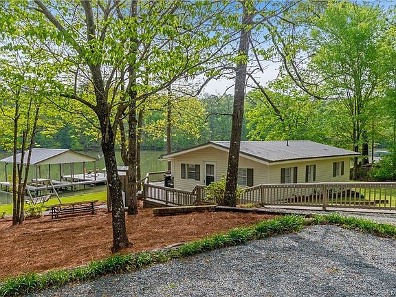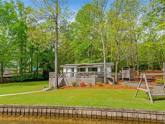 STUNNING cabin on beautiful flat lot with 197 waterfront feet, concrete sea wall, detached enclosed boat house, covered boat dock with two slips, both with lifts and a floater dock. Home has under gone a complete renovation to include new appliances (including ice maker), new cabinets, beautiful leathered marble countertops, custom window treatments throughout cabin, tile shower, ship lap walls, all new light fixtures and fans, fresh paint inside and out, including dock and boathouse.