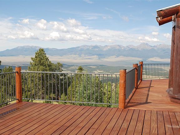 Vista Majestuosa is a magnificent 5 star executive turn key mountain ranch property situated in a private alpine setting in the sun-drenched Wet Mountains near the Town of Westcliffe, Colorado. Topographically diverse, this 315+/- acre destination property is forested with mature stands of aspen, fir and ponderosa pines complimented with open meadows carpeted with wildflowers and sweeping views across the valley to the snowcapped 14,000' peaks of the Sangre de Cristo Range. From the moment you enter the drive and first see the stunning three level log home you know this a ranch where quality has not been compromised. The 7200+/- square foot home was built from massive logs from British Colombia and constructed in the Swedish cope style. Portions of the home are also clad in moss rock. The three-level, five bedroom, four bathroom home, built in 1993/2007, has been impeccably enhanced and maintained.