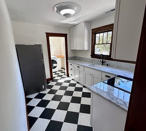 New kitchen with marble countertops, range and refrigerator. Separate laundry space with washer/dryer. Large bedroom, new carpet and lots of closet and storage space.