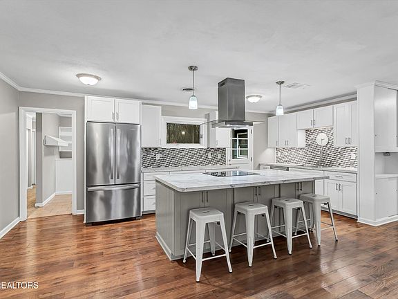 Charming South Knox rancher! This 5BR/2BA split floor plan features an opened up living room with laminate flooring, updated fixtures, crown moulding, and oversized bay window for plenty of natural light. The upgraded kitchen boasts tons of cabinet and counter space, stainless steel appliances, tiled backsplash, and a large center island with room for additional seating. There is plenty of room for family, friends, hobbies, and storage with FIVE bedrooms (a rarity!), 2 updated baths (with gas tankless water heater for endless hot water!), laundry room with mud sink and storage, and a bonus/flex space that could be used as a rec room, playroom, home office, and more! Enjoy the flat fenced yard rain or shine from the private covered patio. Ideally located mere minutes from Chapman Hwy, this home is less than 10 minutes to Ijams or the South Knox waterfront, and only 15 minutes to downtown or UT campus!
