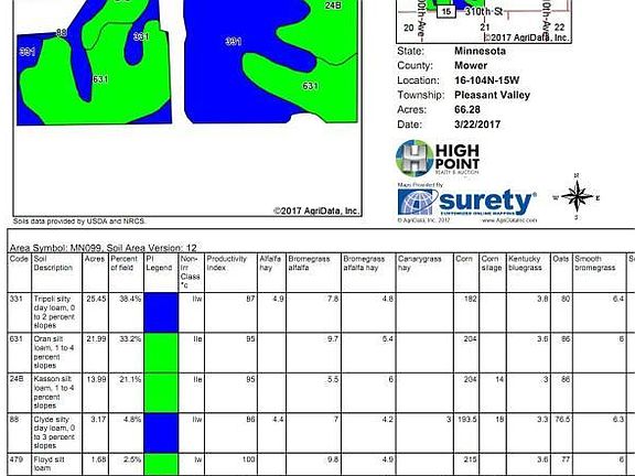 This farm is tiled, with 69-73 tillable acres. Farm access is great with 2 large driveways. One of which is on blacktop. CPI is 91.6. This would make a great 1031 exchange. Great renter in place with long term history on this nice farm.
