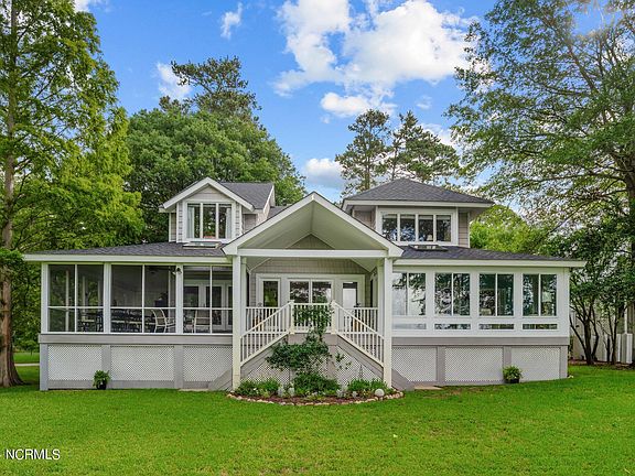 Welcome to your dream home with waterfront footage directly on the Pamlico River. Just a short drive from the town of Washington, NC with great restaurants, theater and shopping! This charming property boast a beautiful front yard with perfect serene views from the porches for entertaining. Upon entering, you are greeted by a spacious living room with vaulted ceiling and featuring a cozy double sided gas fireplace, ideal for gathering with loved ones. To the right lies the heart of the home - a beautiful kitchen with granite countertops and pantry - then go into your laundry room with a laundry sink. The first floor also features a den that was originally designed to be a primary bedroom with a large closet and full bath. This room also has a fireplace. There is a sunroom and office area off of this ''Potential'' primary bedroom. The screened porch has been set up to be a great entertaining area or ''Man Cave'' with a television and refrigerator for beverages to enjoy those River Breezes. The second floor of this home features another Primary bedroom with a built in desk and of course, closet and bath. There are two more guest rooms that share a full bath. The lot is bulkheaded with a pier and features a boat lift and jet ski lift. You will enjoy this well maintained lawn that has an irrigation system and its own private well.