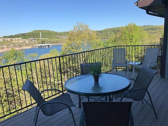 Enjoy this fabulous view of Table Rock Lake from an upper level Sunset Cove Condo. This beautiful condo features an open floor plan with a vaulted wood ceilings & Skylight. The great room includes a wood burning fireplace and access to the deck for those beautiful sunsets! The great room opens to the kitchen and dining area with a kitchen bar. There are 2 spacious bedrooms with access to the deck and 2 spacious baths. The charming lodge decor could include the furnishings for additional costs. Move right in & enjoy the extra amenities of an indoor year around community heated pool, exercise center and community center. Lots of storage, covered parking garage and private gated entrance is part of this wonderful property. Located close to Branson entertainment and Table Rock Lake