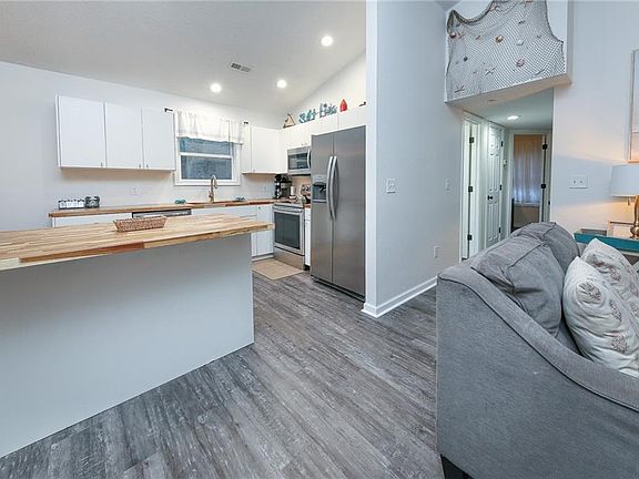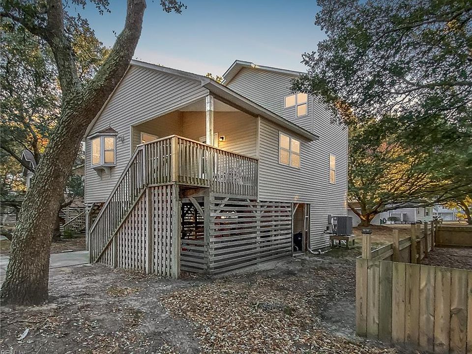 Welcome to your perfect beach getaway, vacation rental, or primary home in the heart of First Flight Village, Kill Devil Hills, NC! This charming and fully furnished beach box is move-in ready and comfortably sleeps eight, making it ideal for creating lasting memories. Step inside off the covered deck  to find beautiful newer LVP flooring throughout and an inviting kitchen featuring butcher block counters, a center island &dining area that opens seamlessly to the great room. The spacious primary suite upstairs offers a tranquil retreat with a walk-in closet and an ensuite bathroom complete with a relaxing jacuzzi tub. Below the home, enjoy an enclosed laundry area and a fun game space, perfect for entertaining or unwinding after a day at the beach. The yard features a fenced area for privacy and open space to enjoy outdoor activities. This gem is perfectly situated just a short distance from the beach, Wright Brothers Memorial Park, shopping &restaurants.Enjoy the OBX life!Call today
