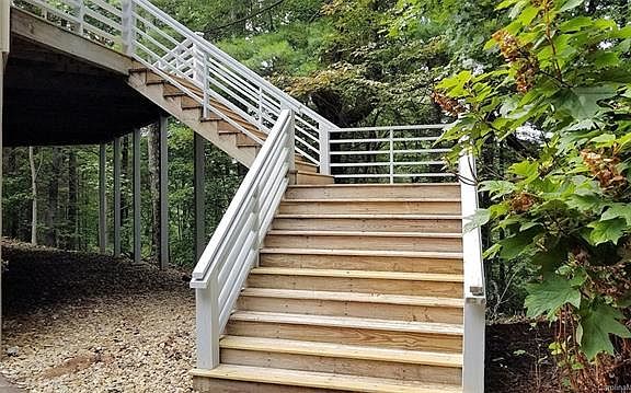 Wonderful contemporary 3 bedroom 3 bath home with high vaulted wood ceiling in living/great room areas and loft, extensive wood floors in main living areas and tile in baths. Large master suite with expansive bathroom area with whirlpool tub and walk-in shower. Open living/dining/kitchen floor plan to to glass wall opening onto large open deck plus a screened porch. Reported HLA does not include 2nd floor loft area with sloping wood ceiling. Lower level basement garage with workshop room. Additional parking areas on main level near front door. Wooded setting in Thomas Forest subdivision. Adjacent Lot 12 (to rear of this property) is available from seller for $45,000. Lot 11 to right side of entrance drive may also be available. Due to COVID-19 showing agents and buyers should wear a mask and avoid touching items in the house. Thank you.