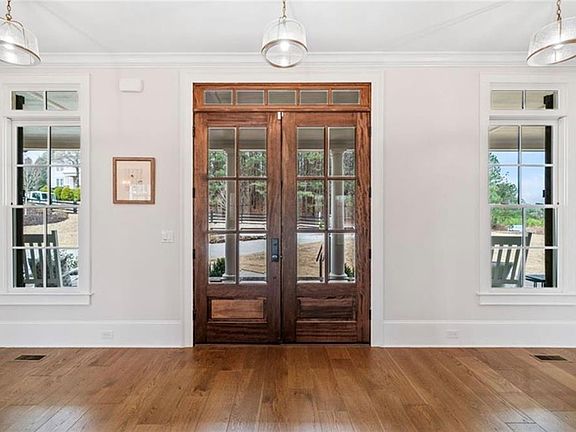 Introducing 310 Timberview Trail, a stunning, newly constructed custom estate nestled within the prestigious Liberty Grove enclave of Milton’s coveted Blue Valley. This exclusive, gated community offers a serene environment with lush green spaces, remarkable amenities, and the added benefit of Cherokee County’s lower property taxes. Crafted in 2023, this exceptional home features a highly sought-after layout with the primary suite conveniently located on the main level. The home also boasts a spacious laundry and mudroom, an openconcept dining area, an exquisite chef’s kitchen, a private office, and a charming keeping room—all designed to seamlessly blend indoor and outdoor living, with direct access to the expansive covered patio. Set against a backdrop of unparalleled privacy, the beautifully landscaped lot is complete with a pool, hot tub, and multiple outdoor entertaining areas. Inside, natural light pours into the home through soaring ceilings, accentuating the open-concept design. The chef’s kitchen is a masterpiece, featuring quartz countertops, a generous island, and a premium suite of appliances. A vaulted keeping room with a cozy fireplace offers stunning views of the private backyard, providing an ideal retreat within the home. Exquisite custom woodwork throughout the space elevates the property to a new level of elegance. The main floor also includes an oversized laundry room, with a secondary laundry space located upstairs. The second level hosts four luxurious ensuite bedrooms, each with spacious walk-in closets, along with an additional loft area for added flexibility. The fully finished terrace level is an entertainer’s dream, complete with a state-of-the-art theatre room with a 12-foot screen, a fitness center, a recreation room with its own fireplace, and a full bathroom with both a shower and sauna. This level provides direct access to the heated pool and spa, which is perfect for entertaining guests. The outdoor space is wired for an impressive sound system, further enhancing the atmosphere. Special features throughout the home include a 17 SEER HVAC system, tankless water heaters, 50-year architectural shingles, spray foam insulation for optimal energy efficiency, and low-voltage wiring throughout with home automation capabilities and centralized lighting controlled via wireless internet repeaters. The pool area is ready for enjoyment, with a stunning custom railing and fire bowls that provide a magical ambiance as the sun sets.