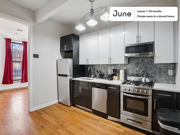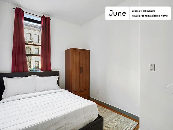 PLEASE NOTE: This is a private room in a shared apartment. You will have your own bedroom and shared common areas (kitchen, bathroom, etc.) with other residents. Full bedroom in a 4 bedroom / 1.5 bathroom apartment! This Full room in Bedford-Stuyvesant is available on a 12 month lease or a flexible short term (31 to 364 days) lease. You pick your custom start and end date. Monthly rent rate is determined by furnishing preference, move-in date and move-out date. Speak to a June representative for recommendations on the best stay duration for the lowest rate. Amenities of this home: Dishwasher, Furnished Common Areas, Wi-Fi - Paid separately (High-Speed), Guarantors Allowed, 32-inch Flat-Screen TV, Central AC (Common space), Laundry in home (free), Hardwood Flooring, Microwave, Oven, Refrigerator, also, this unit is conveniently located, several local parks, restaurants and bars are just minutes away. About June Homes: Welcome to the easiest rental experience of your life. Rent furnished or unfurnished apartments on a 12 month lease or a flexible short term (31 to 364 days). As a resident, you'll have access to 24/7 support and monthly cleanings of the home's shared spaces. Sign up now to apply online for your next home with June. Brokers welcome! Contact us for more details. Use this listing ID when speaking to June team: #867 B