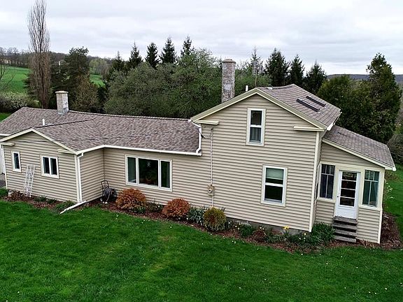 Character abounds in this energy-efficient farmhouse! All the charm of its era updated for today's buyer. The geothermal heat & AC plus new vinyl siding are just the beginning! Custom cherry cabinets complement the eat-in kitchen w/recently tiled floor. Lg Dining Rm is great for entertaining/family gatherings. Comfortable Living Rm & office area w/classic knotty pine walls leads to enclosed porch-great for enjoying the view! Main level has 2 bdrms & a full bath. 2nd floor has 1 bdrm w/full bath! Nearly 2 acres w/mature fruit trees. Private yet not far from town!