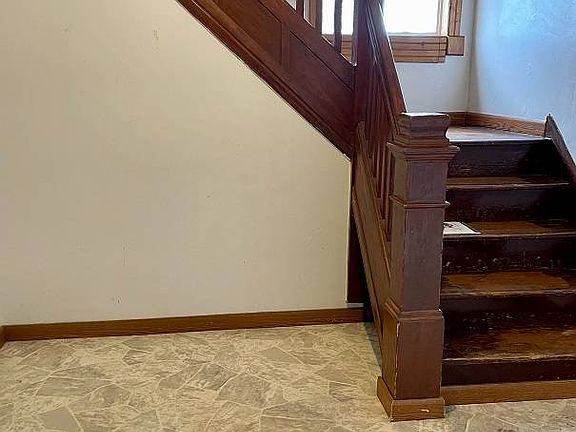 The lots size is 125' X 145.75'. The home has three bedrooms, 2 bathrooms, 1,228 sq. ft with an unfinished basement and detached garage. On the main floor has a front porch, an open living room/dining area, full bath, and kitchen. Upstairs you will find three bedrooms and another bathroom. The basement is unfinished. There is a detached oversized 1-stall garage. $75,000