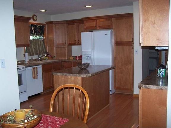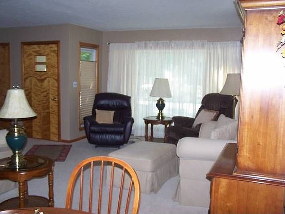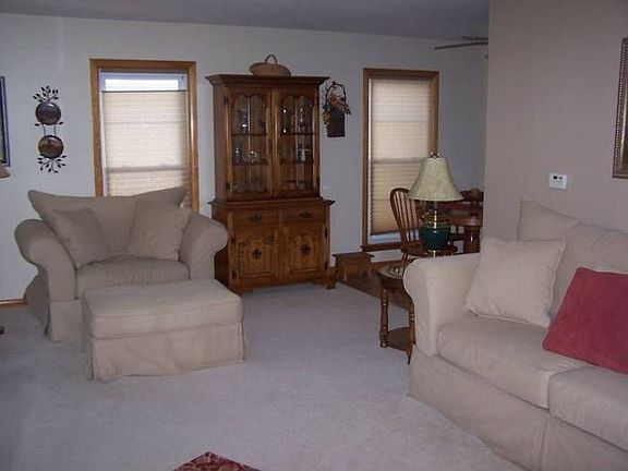 Spotlessly clean and so well cared for you can move right in! Entrance: covered front porch, brick patio, and stone planter make an attractive first impression. LR: 16x15 L shaped LF with cream carpet, taupe walls, accordion pleat shades. NICE! KIT: 12x14 Designer kitchen has laminate floor, maple cabinets, island snack bar, and LOTS of upgrades. Designed for those who feel the kitchen is the heart of the home. BR: 12x13 Cream carpet, taupe walls, corner windows BR: 10x12 Cream carpet, cream walls, corner windows Bath: 5x6 White fixtures, ceramic wall, nice vanity Basement: nice dry basement w/large finished room, Berber carpet. Extra cabinets, high efficiency GFA/CAC, water softener Other: New Thermo pane windows Back patio Large yard for garden 12x44 garage (2 car) RE tax is $1366.68