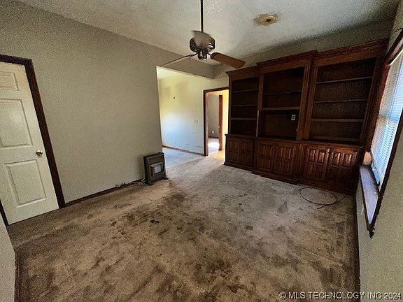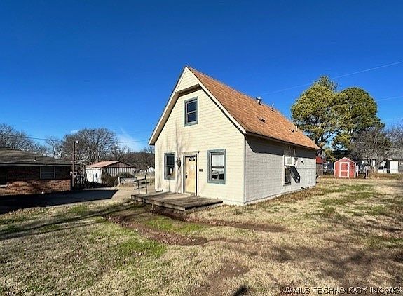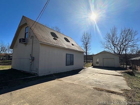 Cute 1 BR 1.5 Bath home on two city lots in the heart of Dewar! With a little TLC, this would be a great starter home or Airbnb in Okmulgee County. Lots of cabinet space with custom built in entertainment center in the living area. Vaulted ceilings. Large bedroom upstairs has half bath and laundry hookups. Office on 1st floor could be used for a 2nd bedroom. 1 car detached garage with concrete floors, attic, and great workspace with gas heat hookup. Large front yard space. Close to school. Call today to schedule your showing!